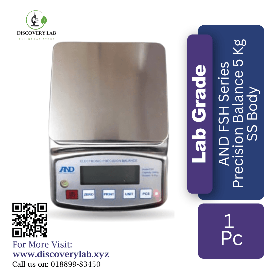 The AND FSH Series Precision Balance 5 Kg SS Body is a high-precision digital weighing scale designed for accurate measurements in laboratory, industrial, or commercial environments. The 5 Kg capacity and stainless steel body make it a durable and reliable choice for a range of applications, particularly where accuracy and robustness are required.