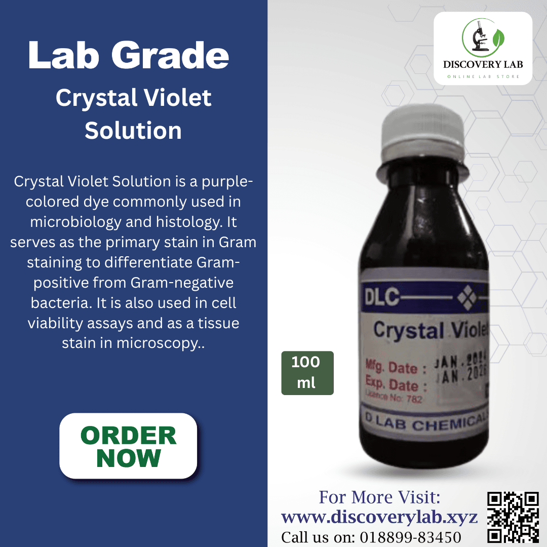 Crystal Violet Solution (CV), a triphenylmethane dye, has been extensively used in human and veterinary medicine as a biological stain, as a textile dye in textile processing industries, and also to provide a deep violet color to paints and printing ink.