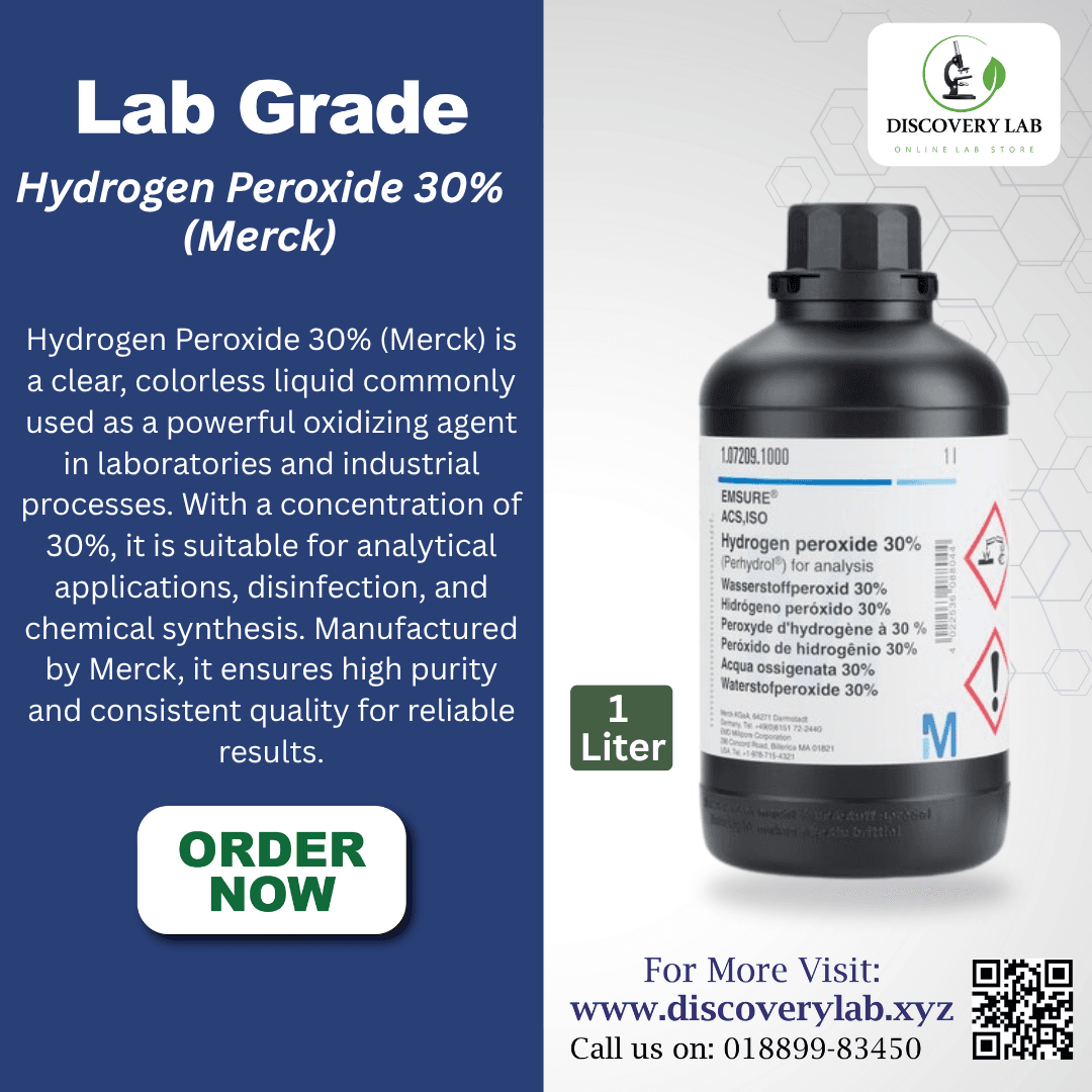 Merck’s 30% Hydrogen Peroxide (1L) is a highly concentrated, industrial-grade chemical, primarily used for its oxidizing properties in various applications. It must be handled with care, and dilution is necessary for many practical uses, including disinfection and cleaning. Always ensure safety guidelines are followed when using or storing the product.